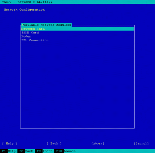 Dans la liste des modules de réseau disponibles, veuillez sélectionner l'entrée Network Card (carte réseau).