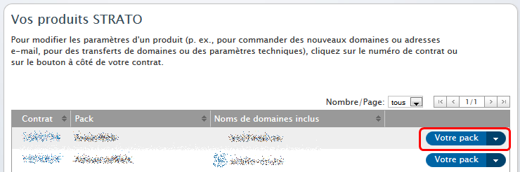 Sélectionnez le pack pour lequel vous désirez consulter les statistiques. Pour ce faire, cliquez sur le numéro de contrat du pack dans la section de droite ou sur le bouton Votre Pack.