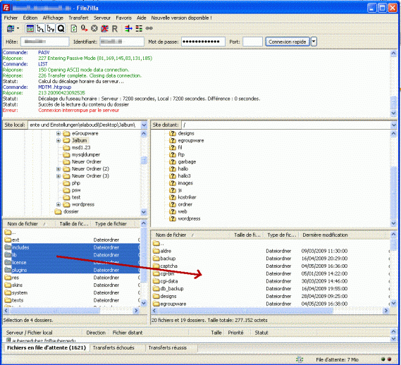 Ensuite faire glisser les fichiers vers la partie Site Distant.