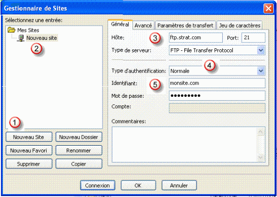 1-Hôte : Votre nom de domaine (sans www) ou bien ftp.strato.com