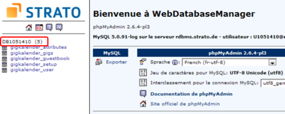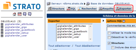 Sélectionner le nom de la base de données dans le menu de gauche.