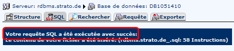 Après quelques secondes, vous verrez que la base de données a été correctement sauvegardée. Un message vous indiquera : Votre reqeête SQL été exécutée avec succès.