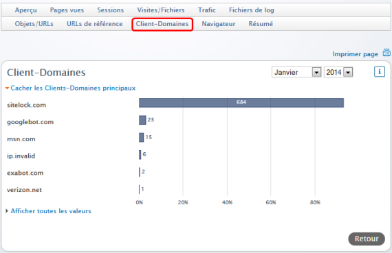 Les domaines client sont les domaines à partir desquels l'accès à votre site a eu lieu.