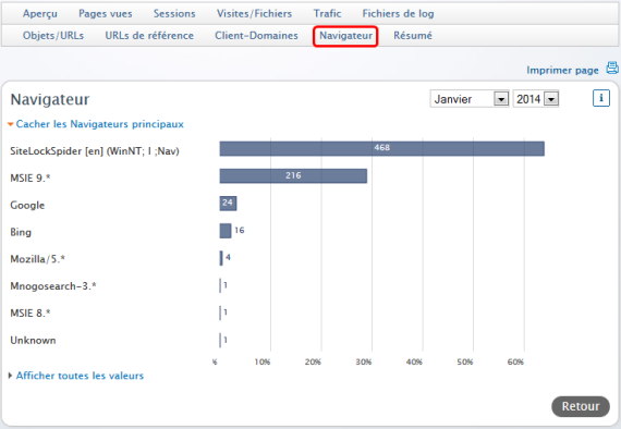 Dans la section Navigateur s’affiche une vue d'ensemble des programmes qui ont servi à ouvrir votre site.