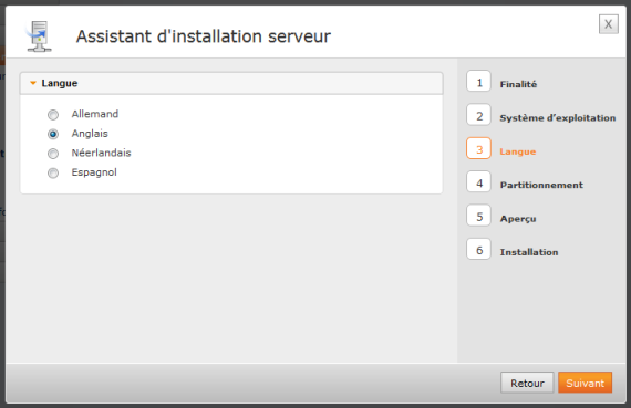 Choisissez ensuite la langue dans laquelle le système d'exploitation doit être installé.