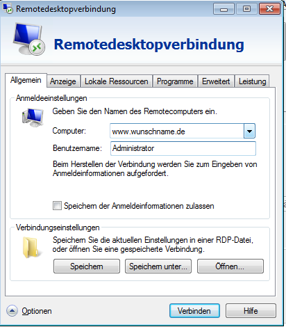 Connexion Bureau à Distance client pour UNIX/Linux (via apt-get install rdesktop ou sudo apt-get install rdesktop)L'installation du Client Terminal Server crée un raccourci du nom de Connexion Bureau à Distance dans le dossier de programme du menu de démarrage. Utilisez le raccourci pour lancer l'assistant de connexion et puis entrez dans le champ de saisie le nom du domaine de votre serveur (si vous avez commandé plusieurs domaines sur votre serveur, celui que vous utilisez n’est pas important). En cliquant désormais sur Connecter, le client se relie au serveur par le biais d'Internet.