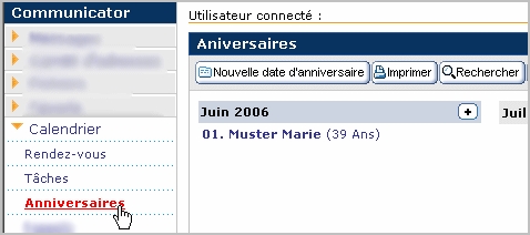 Gérez facilement en ligne les anniversaires des amis, parents, collègues, etc. Pour cela cliquez dans la barre de menu gauche sur "Calendrier" et "Anniversaires".
